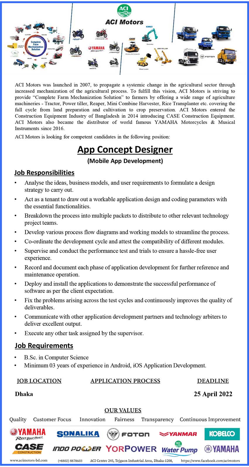 ACI Motors Limited job Circular 2022 has been publish. ACI Motors was introduced in 2007 to promote a systematic change in the agricultural sector through enhanced mechanization of agricultural processes. chakrirkbr.com. To meet this vision, ACI Motors strives to provide farmers with a “complete farm mechanization solution” by offering a wide range of agricultural machinery – tractors, power tillers, reapers, mini combine harvesters, rice transplanters, etc., covering the entire land preparation cycle. And cultivation for crop preservation. ACI Motors entered the construction equipment industry in Bangladesh in 2014 with the launch of CASE Construction Equipment. ACI Motors became the world famous distributor of Yamaha motorcycles in Bangladesh in 2016. Apply by viewing ACI Motors Limited job Circular 2022.